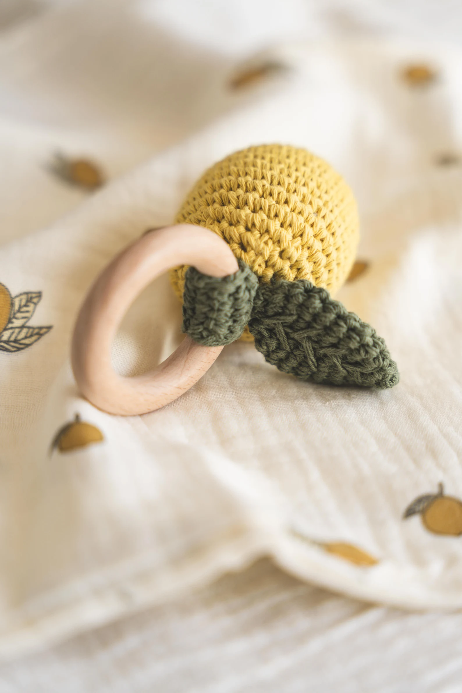 - Chocalho de Crochê em Forma de Limão: Divertido e seguro para estimular os sentidos do bebé. Com textura suave e som agradável, ele é perfeito para as mãozinhas pequenas explorarem.